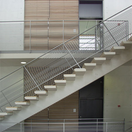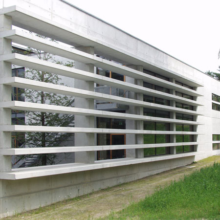 A mix of in-situ and precast concrete All these effects were made possible using white in-situ cast concrete for the facades and internal ‘street’ inner walls and floors, columns, beams and other inner walls of white element concrete. This mixture of in-situ and element concrete is interesting and successful both technologically and aesthetically.