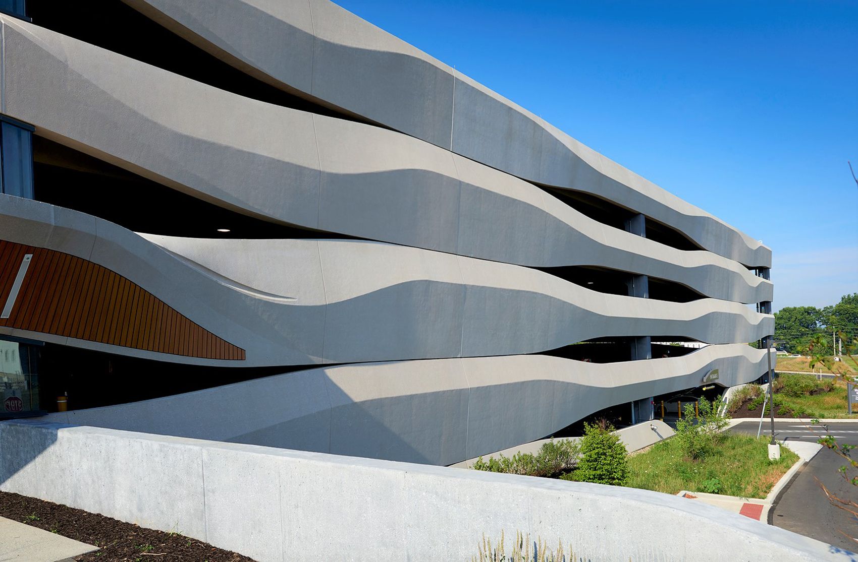 3D波浪元素借鑒了山與河景觀的設(shè)計(jì)靈感,由High Concrete Group設(shè)計(jì)。 該項(xiàng)目總計(jì)四層,8英尺高的懸臂式入口分兩次澆筑,以適應(yīng)其巨大的深度。設(shè)計(jì)團(tuán)隊(duì)使用Rhino和Tekla工具來(lái)進(jìn)行參數(shù)設(shè)計(jì),找到了最大化模板的方法,同時(shí)保持工程穩(wěn)定性和最少的設(shè)計(jì)更改,顯著達(dá)到節(jié)約成本的要求,從而能在4個(gè)月內(nèi)安裝完成。該項(xiàng)目是2021年P(guān)CI建筑獎(jiǎng)得主之一。